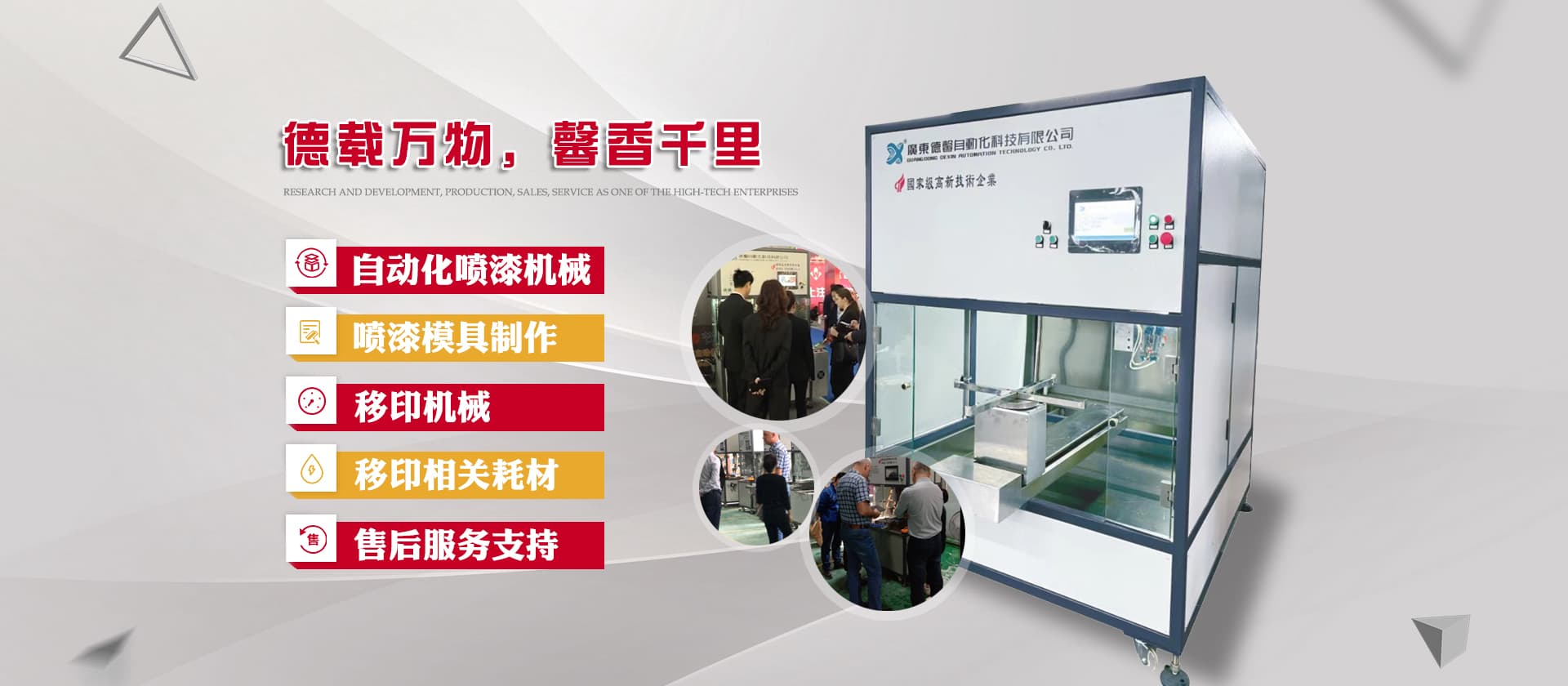 德馨科技創(chuàng)立以來,以改變噴印業(yè)傳統(tǒng)手工生產模式為目標,產品開發(fā)制造堅持以“環(huán)保、智能”為理念,為企業(yè)的生產環(huán)境、人力成本、生產效率等提供更為優(yōu)良的服務和技術支持。公司研發(fā)產品主要有自動化噴漆機械、噴漆模具制作等;生產銷售移印機械及移印相關耗材,包括菲林設計輸出;鋼板制作、移印膠頭制作、定位制作及周邊配件耗材并提供完善的售后服務支持。